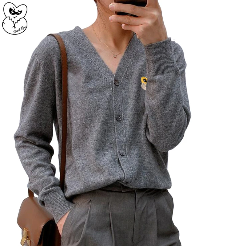 Женский однобортный Кардиган из хлопка, с вышивкой в виде сердечек