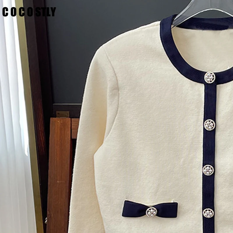 Женский однобортный Кардиган с круглым вырезом, длинным рукавом и высокой талией