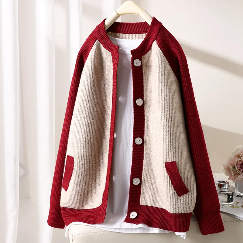 Женский однобортный вязаный кардиган Soxu, Осенний свободный свитер с круглым вырезом и декоративными карманами