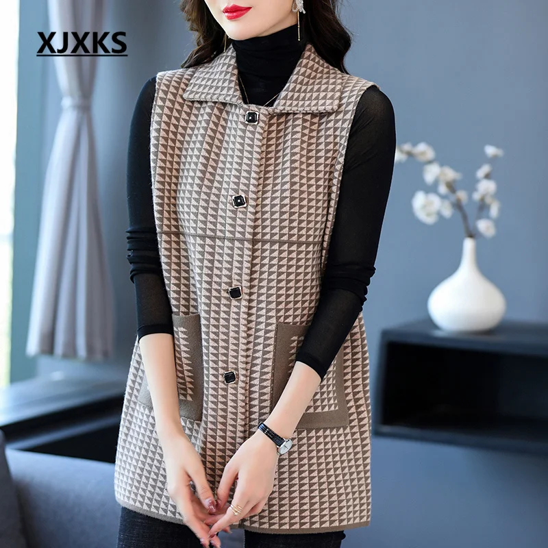 Женский однобортный длинный жилет XJXKS с лацканами, последняя верхняя одежда на осень и зиму 2022, свитер, пальто, Chaquetas