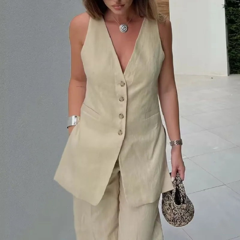 Женский однобортный жилет с V-образным вырезом, без рукавов