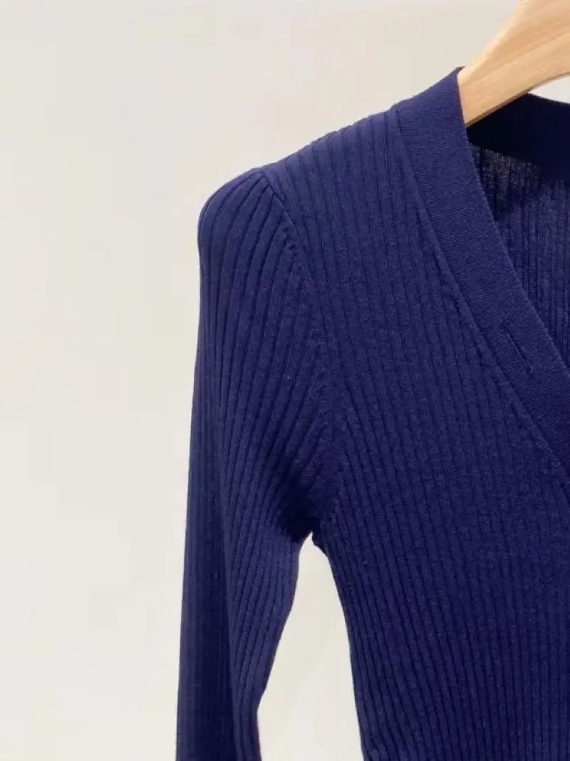 Женский однобортный свитер с V-образным вырезом и длинным рукавом