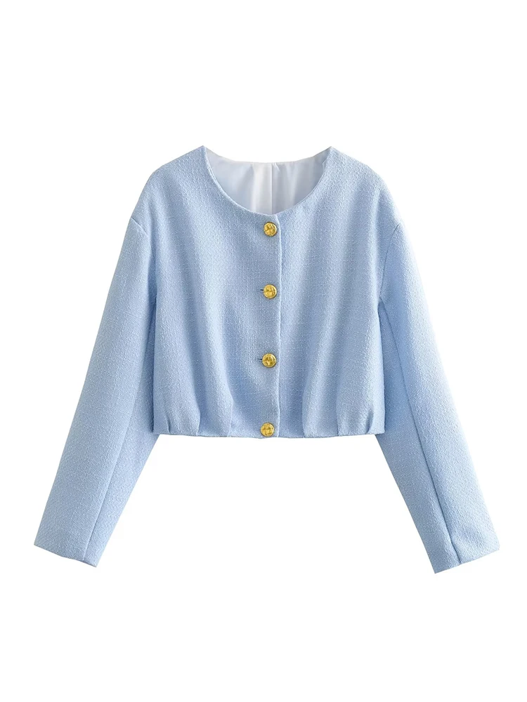 Женский однобортный укороченный жакет с длинным рукавом и круглым вырезом
