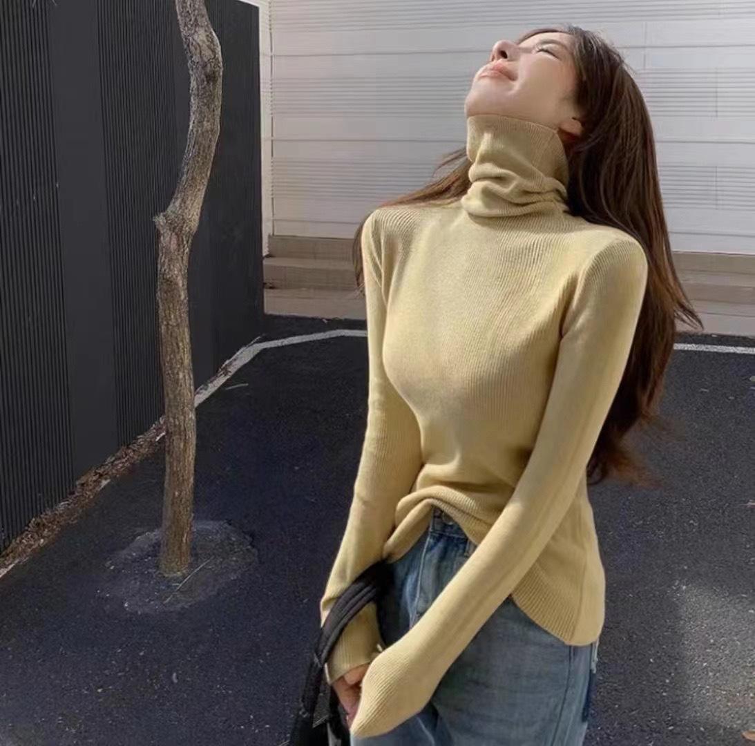 Женский однотонный вязаный свитер с воротником-стойкой, облегающее пальто в стиле вестерн, универсальная рубашка на осень и зиму ONE SIZE жёлтый