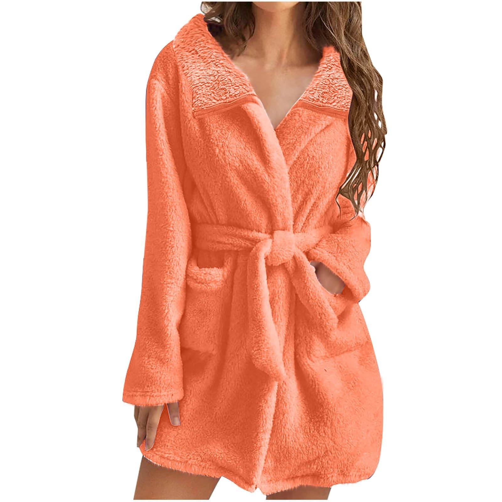 Женский однотонный длинный рукав осенне-зимний теплый халат домашняя одежда плюшевая пижама ночная рубашка XXL оранжевый