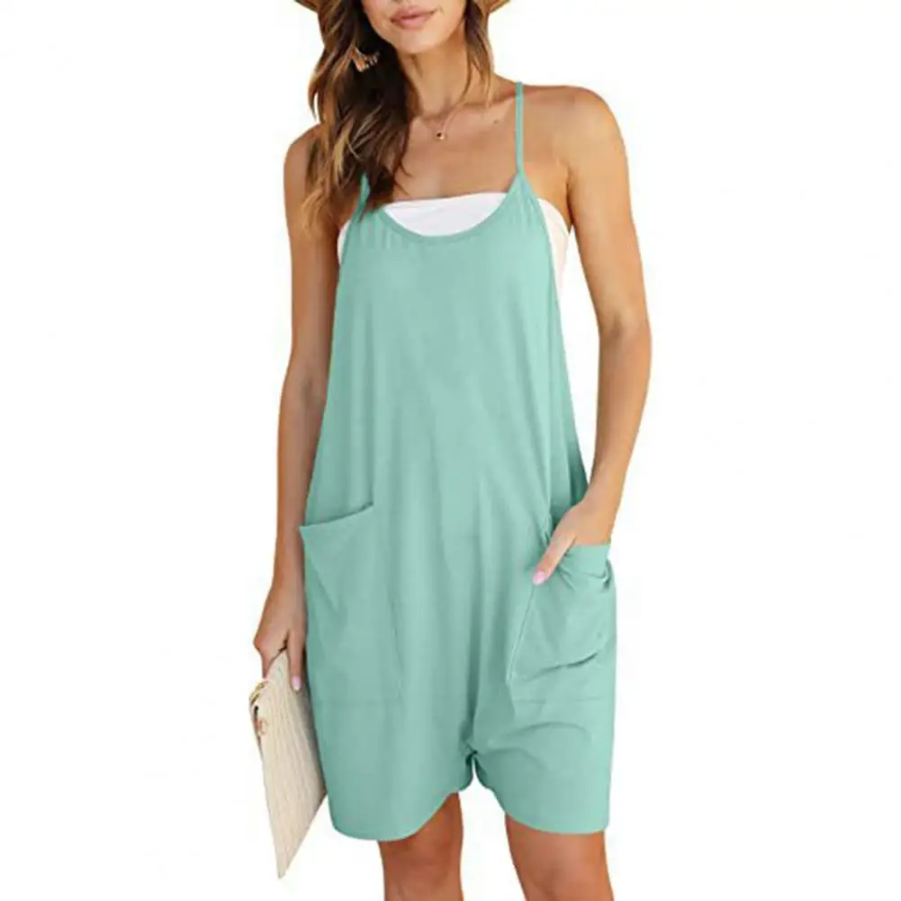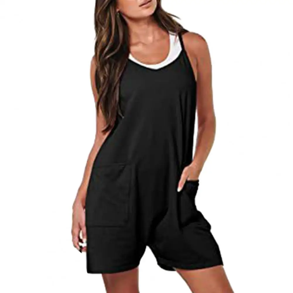 Женский однотонный комбинезон без рукавов, с V-образным вырезом и карманами