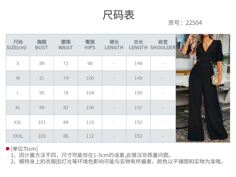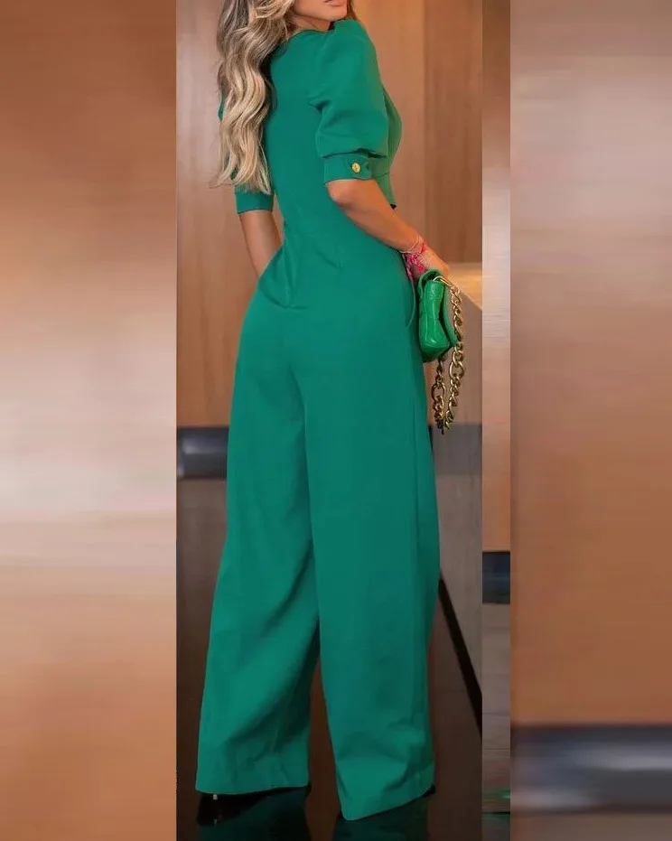 Женский однотонный комбинезон с рукавами-фонариками и V-образным вырезом