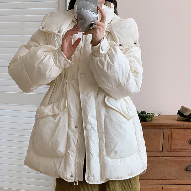 Женский однотонный пуховик на молнии, с капюшоном, на белом утином пуху