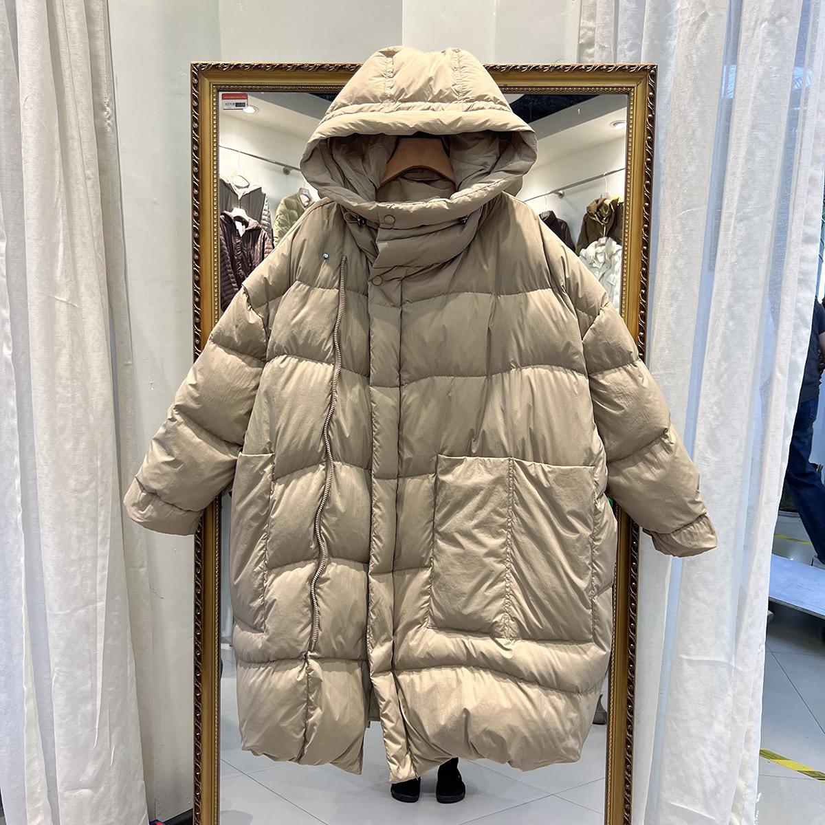 Женский осенне-зимний пуховик с большими лацканами и капюшоном, свободное однотонное пальто большого размера One Size хаки