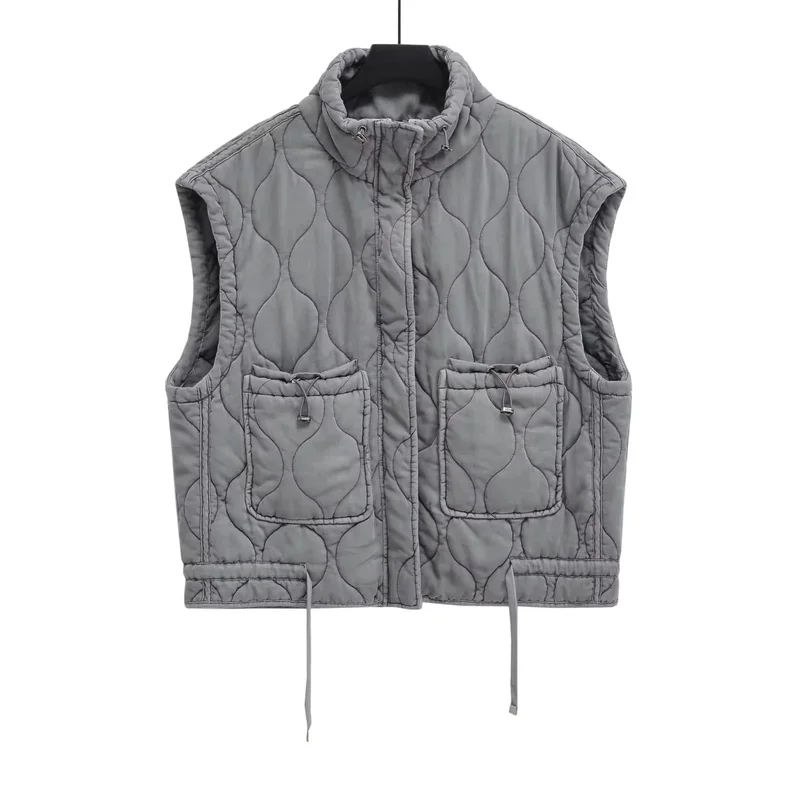 Женский осенне-зимний хлопковый жилет без рукавов со стоячим воротником