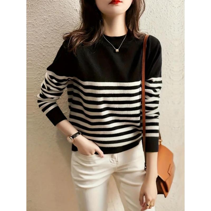 Женский осенне-зимний черно-белый полосатый вязаный кардиган свободный свитер XL чёрный/белый
