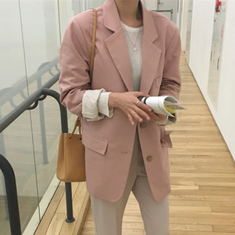 Женский офисный блейзер с длинным рукавом, розовый пиджак свободного покроя в Корейском стиле, одежда для офиса, жакет, S128, осень 2019