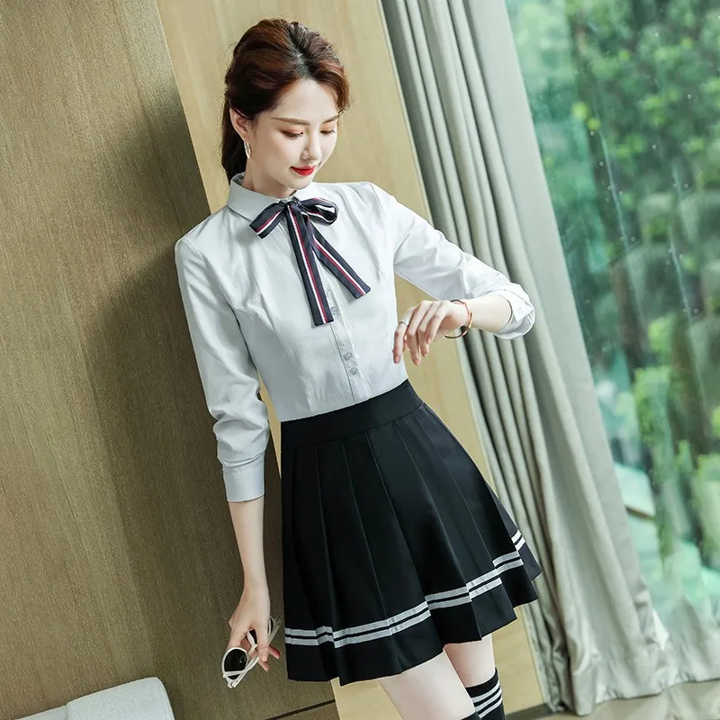 Женский офисный комплект из 2 предметов, рубашка с длинным рукавом и юбка