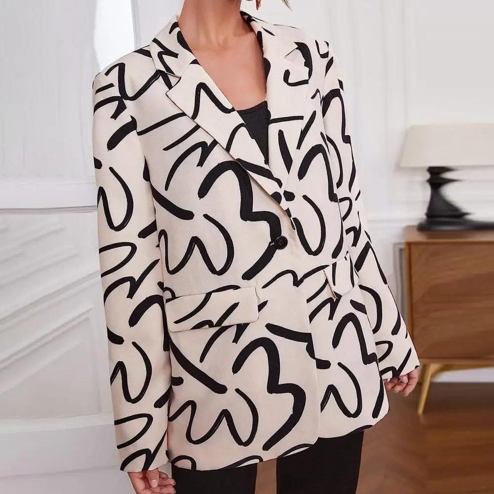 Женский офисный костюм большого размера с отложным воротником и длинными рукавами