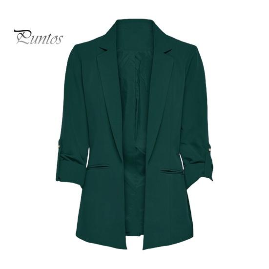 Женский пиджак с отложным воротником и длинными рукавами, однотонный пиджак с открытым передом для офиса и деловой одежды M темно-зеленого