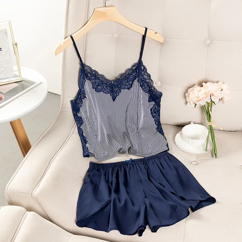 Женский пижамный комплект из 2 предметов, Летний Шелковый Атласный топ на бретельках и шорты, одежда для сна, Пижамный костюм, пикантный Пижа...