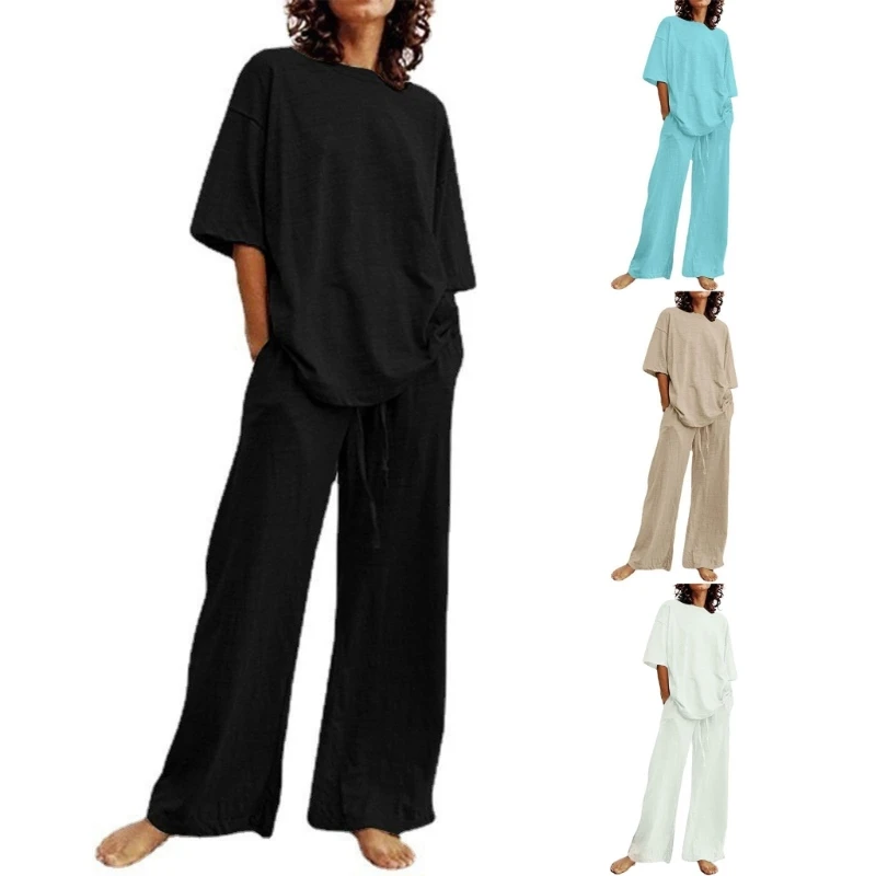 Женский пижамный комплект с коротким рукавом из хлопка и льна, комплект для отдыха, одежда для сна, домашняя одежда
