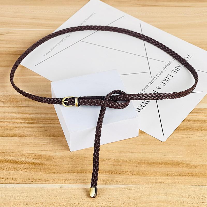 Женский плетеный ремень с игольчатой пряжкой без проколов, узкий, аксессуары для платья, ретро, лето