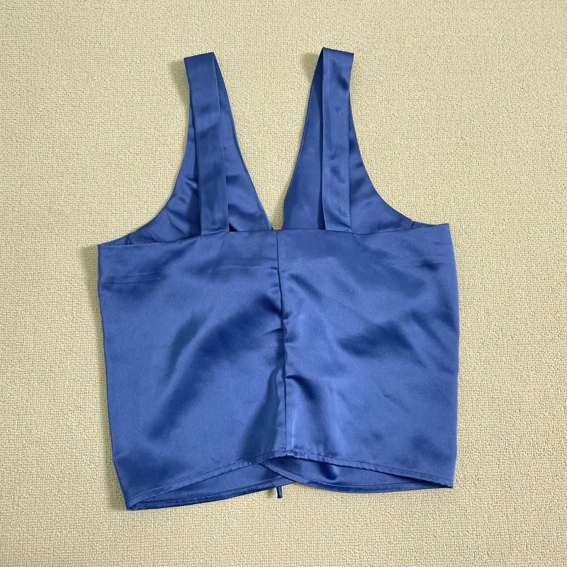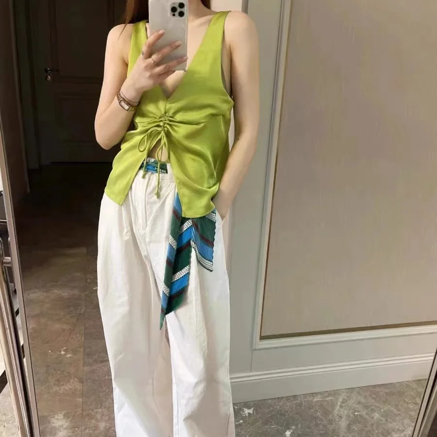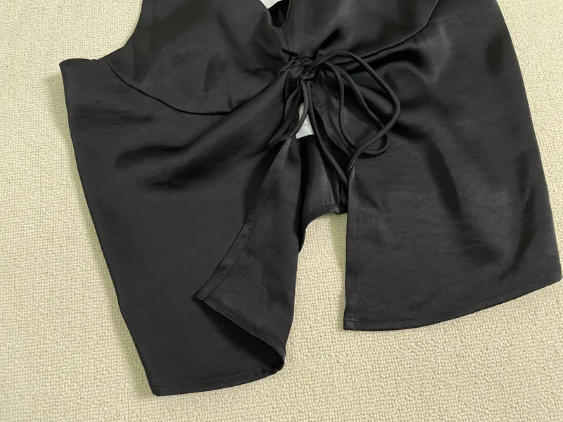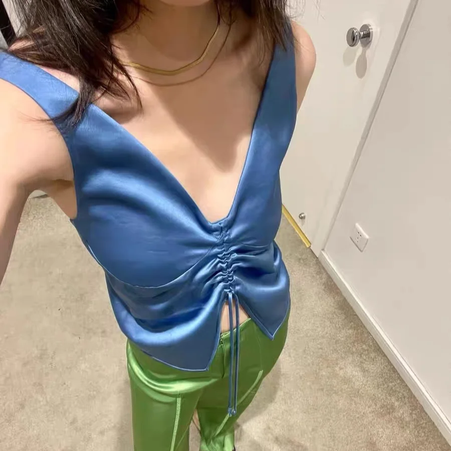Женский плиссированный атласный жилет с V-образным вырезом и лямкой на шее