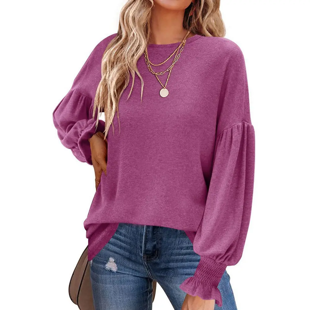 Женский плиссированный топ составного кроя с длинным рукавом и круглым вырезом, Элегантные повседневные свободные рубашки, однотонные топы, Осень-зима 2023, футболки