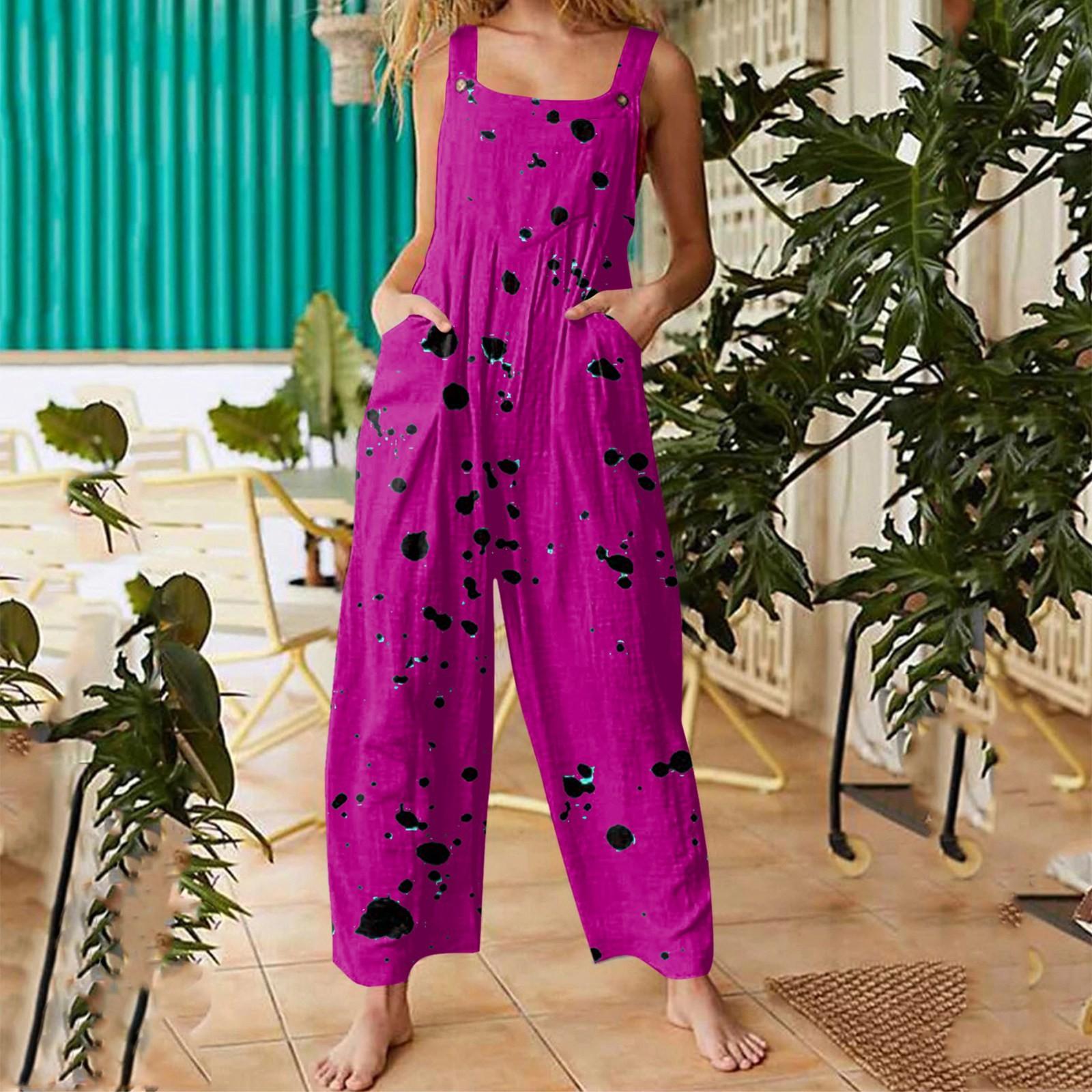 Женский повседневный комбинезон без рукавов с принтом в горошек из хлопка M горячий розовый