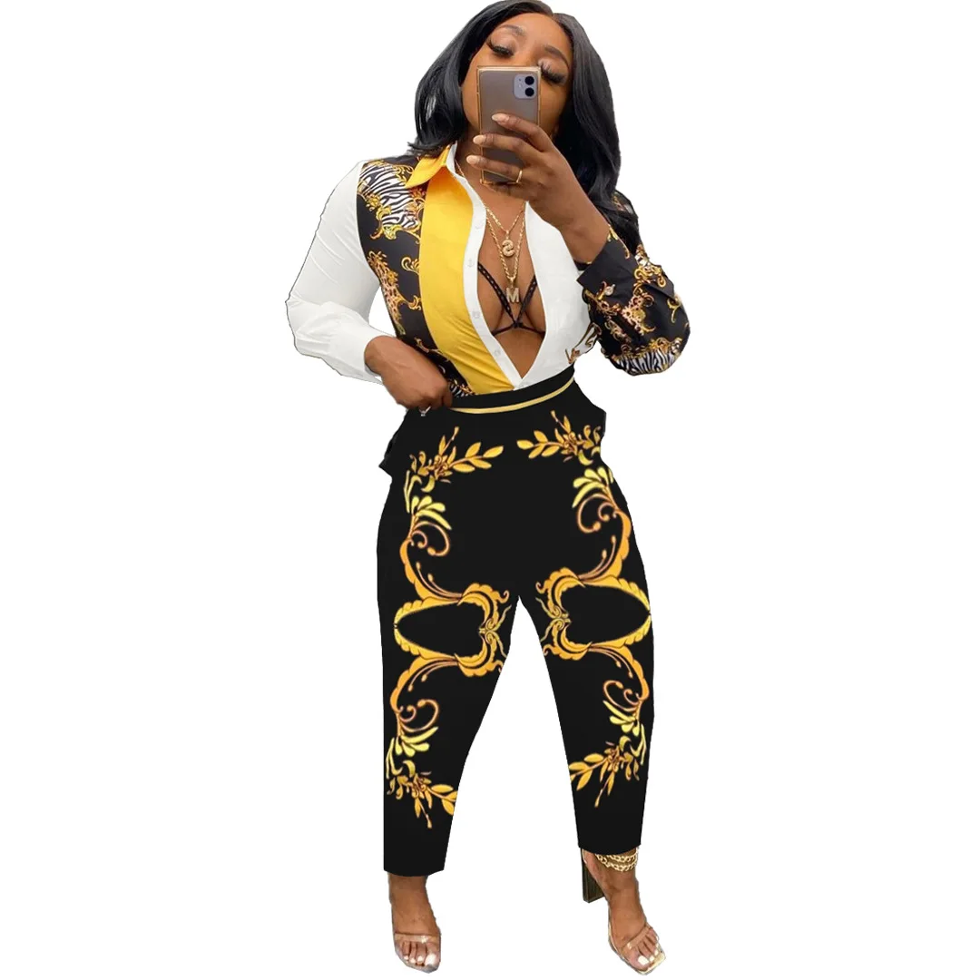 Женский повседневный комплект из 2 предметов, блузка и брюки с длинным рукавом