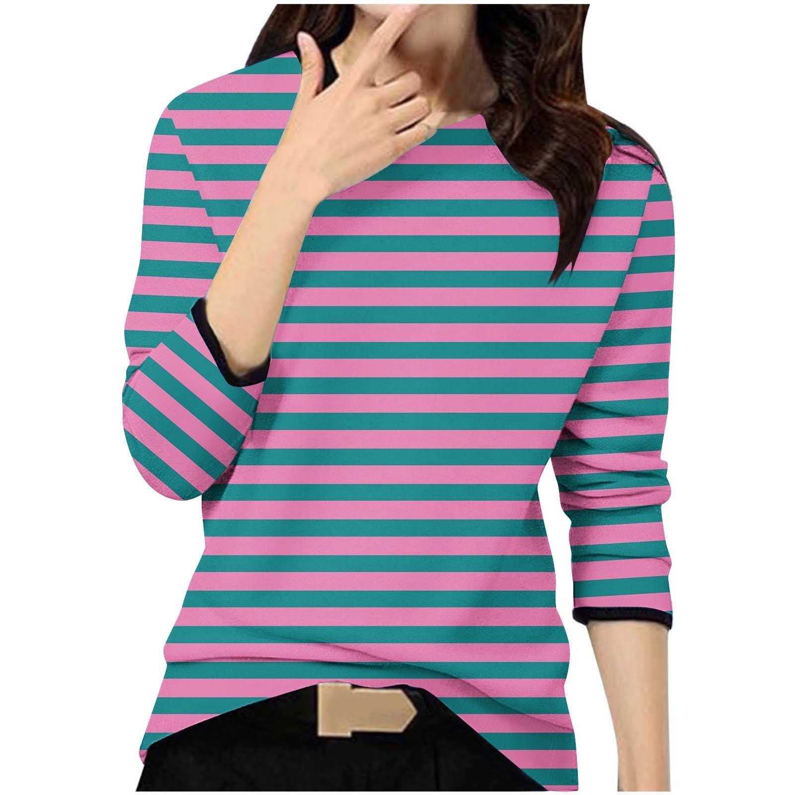Женский повседневный модный топ с принтом, круглым вырезом и длинными рукавами, пуловер XXL горячий розовый