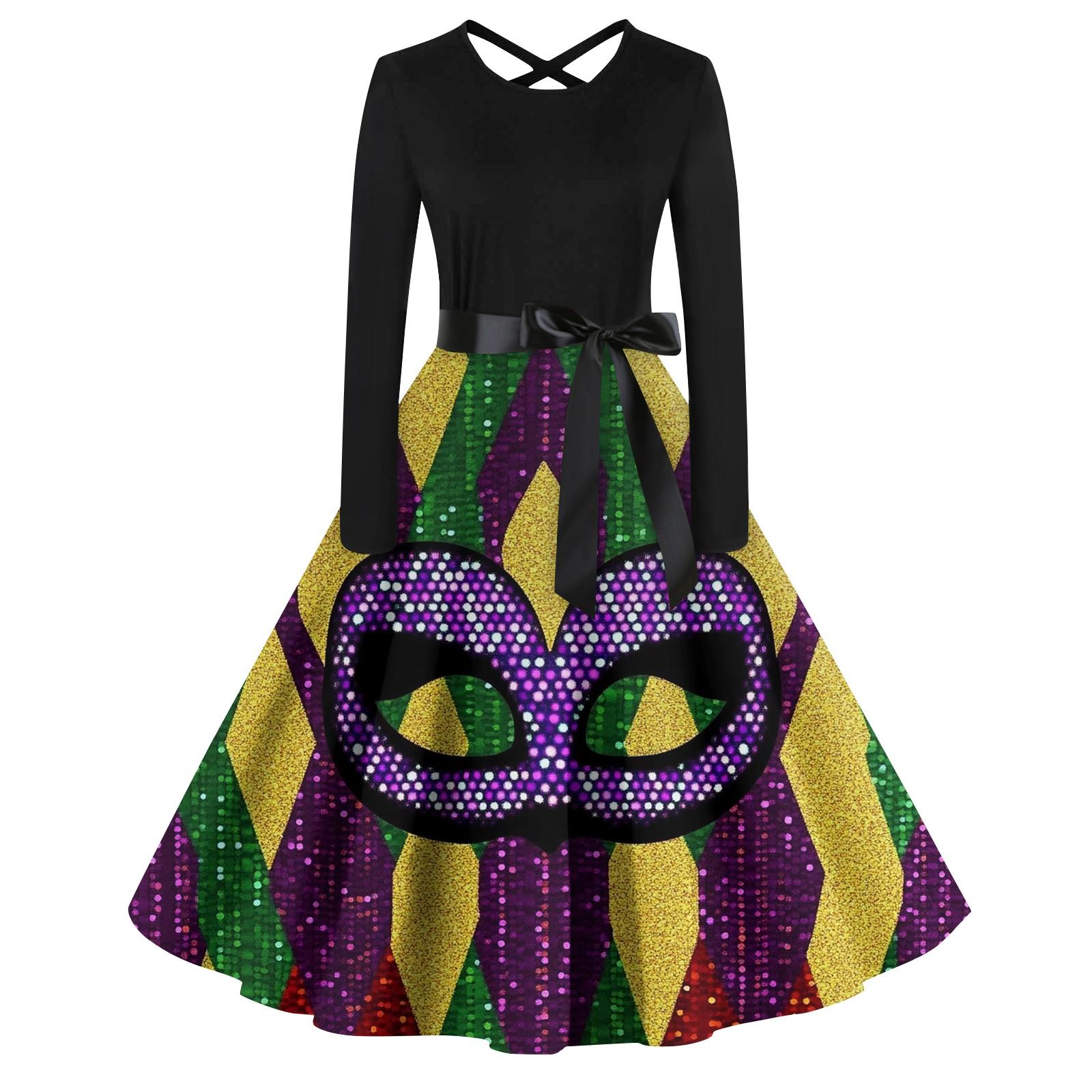 Женский повседневный пуловер с круглым вырезом и принтом, платье с высокой талией и длинными рукавами L