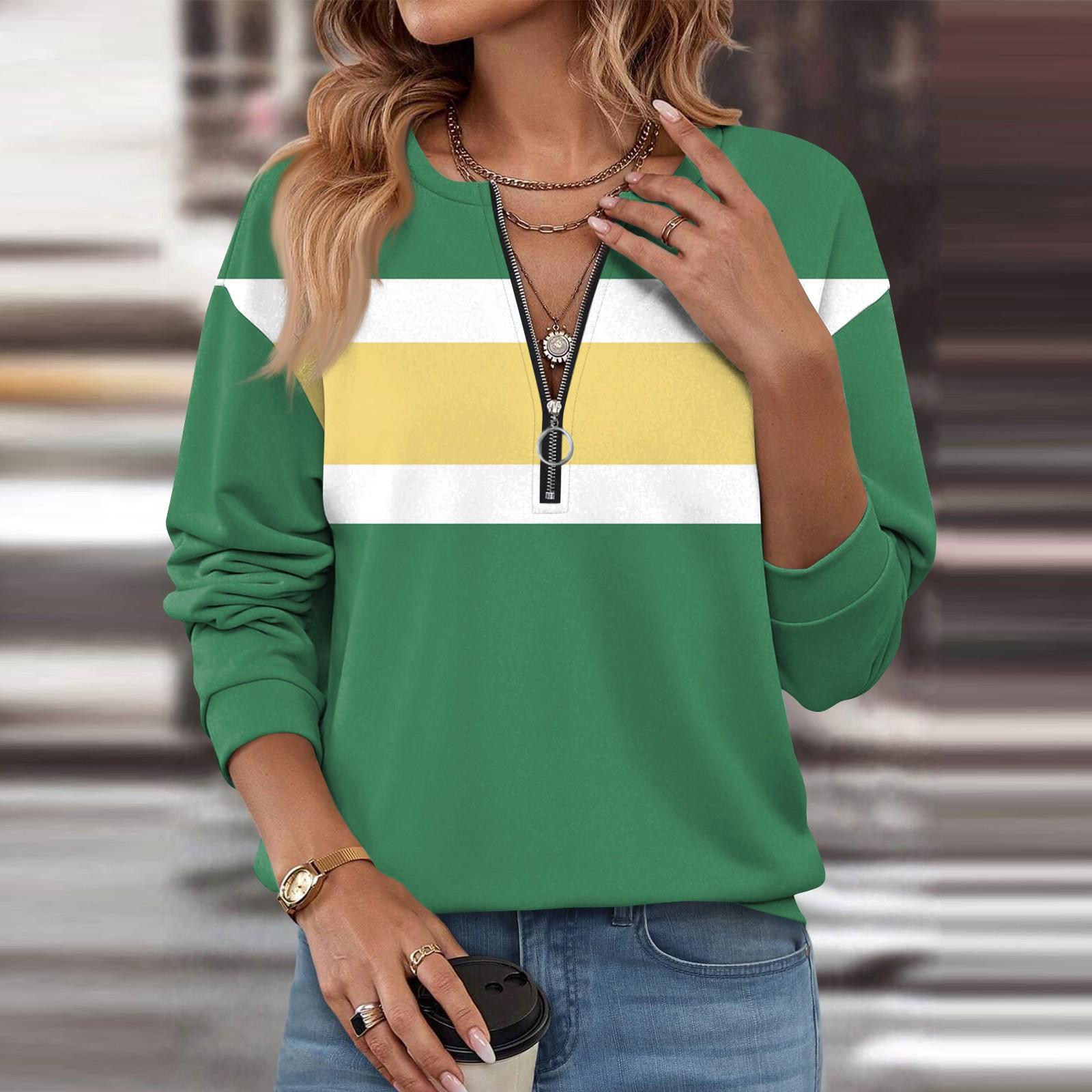 Женский повседневный свитер с длинным рукавом и застежкой-молнией на четверть длины, цветной блокирующий пуловер, толстовки, повседневная верхняя одежда на осень M зелёный
