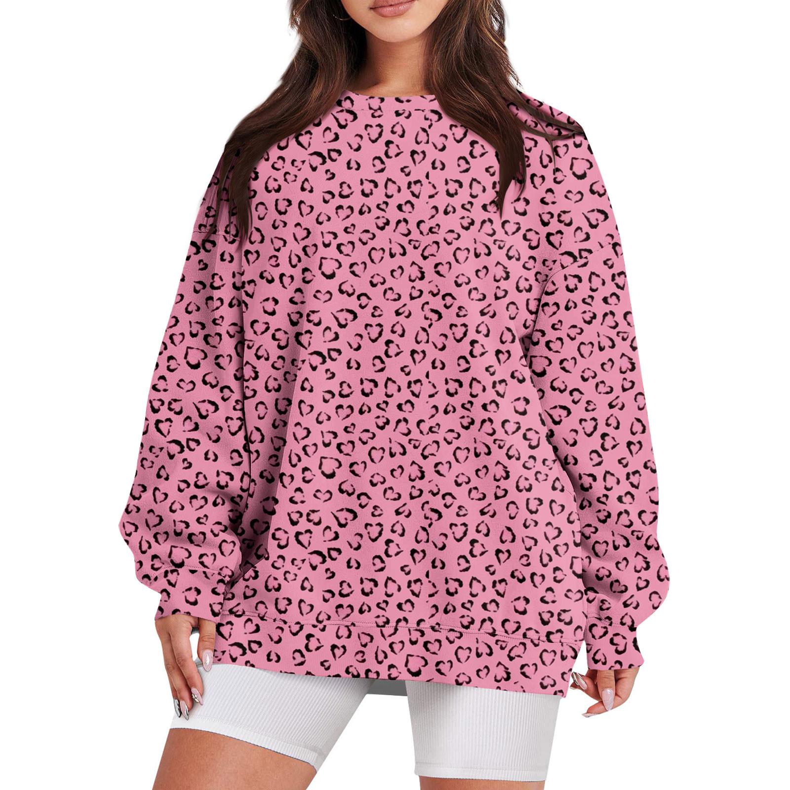 Женский повседневный свободный свитер с круглым вырезом и длинными рукавами с принтом и карманом XL розовый