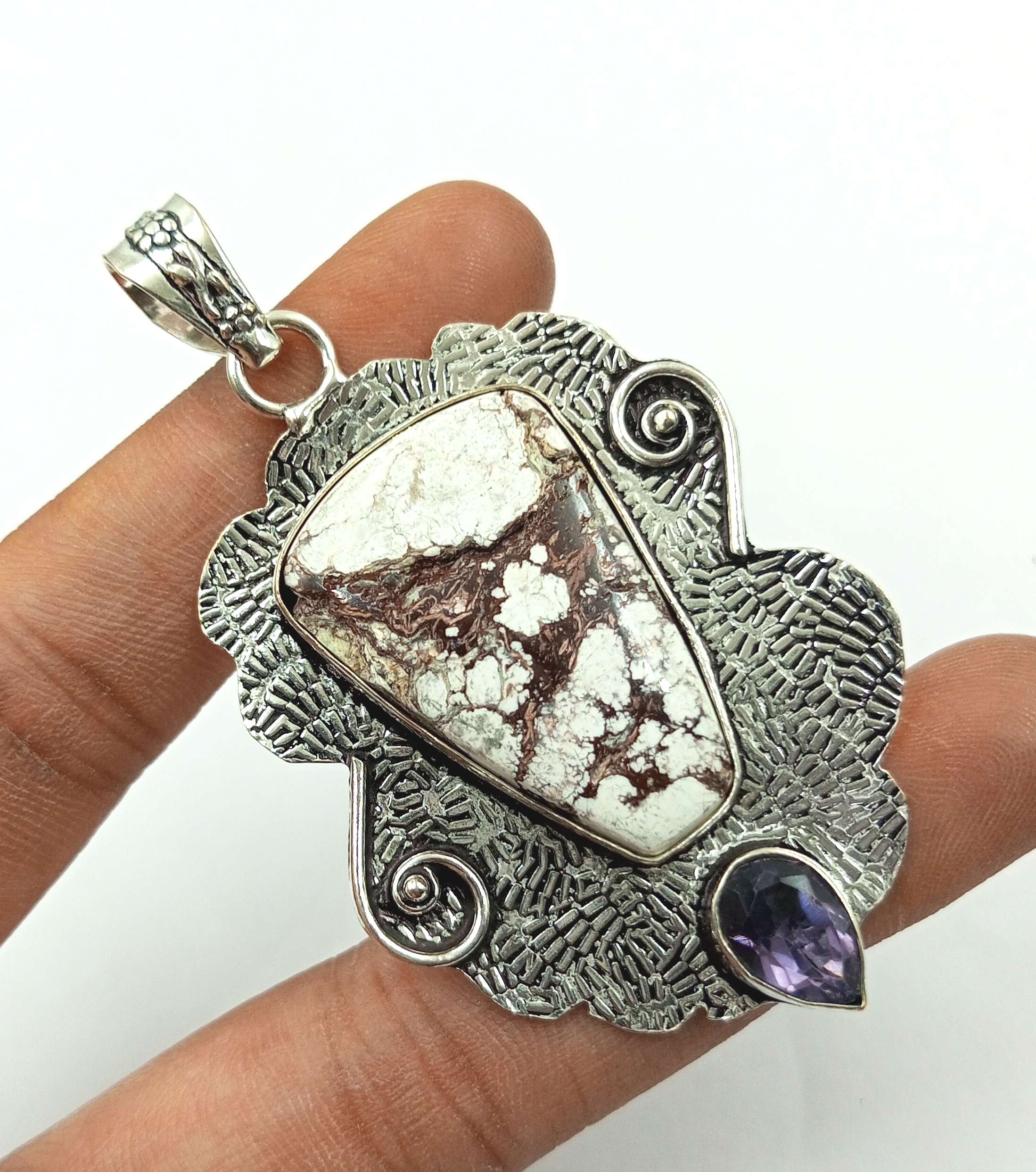 Женский подарочный кулон с дайматской яшмой из стерлингового серебра 925 пробы UUOL-P74