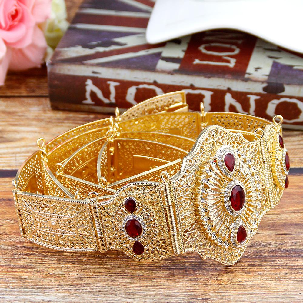Женский пояс золотого цвета, поясная цепочка, ювелирные изделия, пояс для невесты, свадебные украшения, регулируемая длина красный