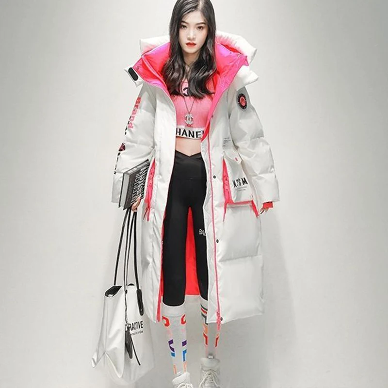 Женский пуховик с капюшоном, куртка на белом утином пуху со съемной шапкой и принтом, свободная повседневная куртка на молнии, зима 2023