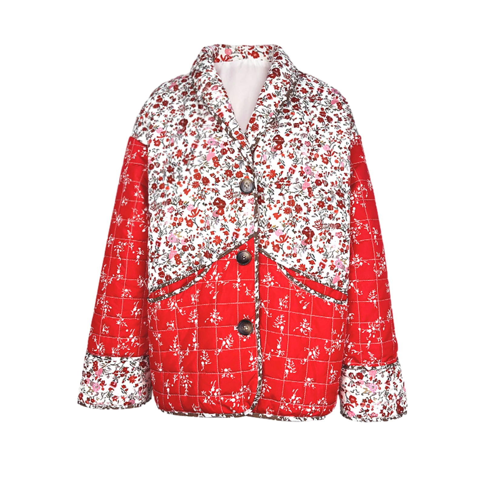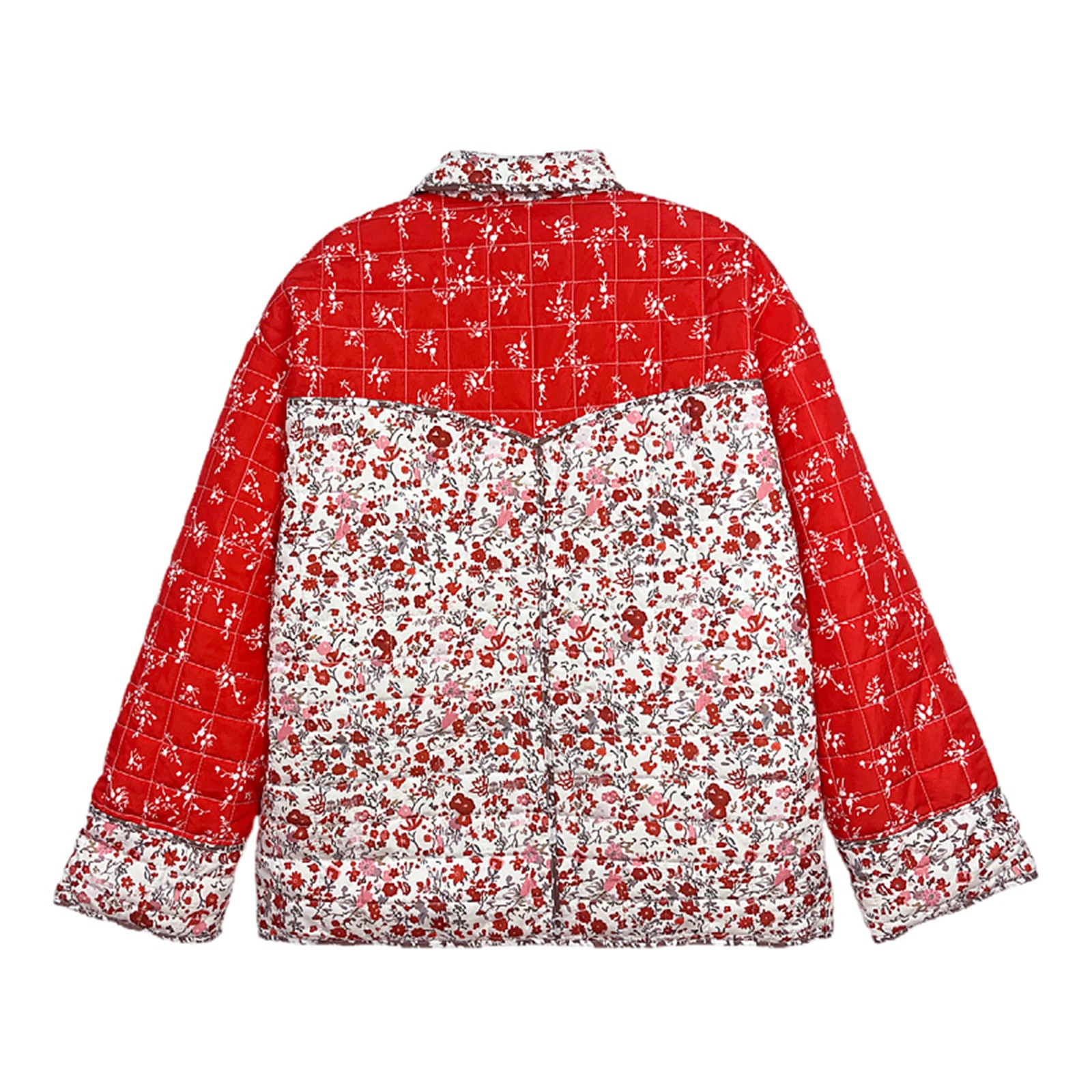 Женский пуховик с цветочным принтом, длинным рукавом и отложным воротником