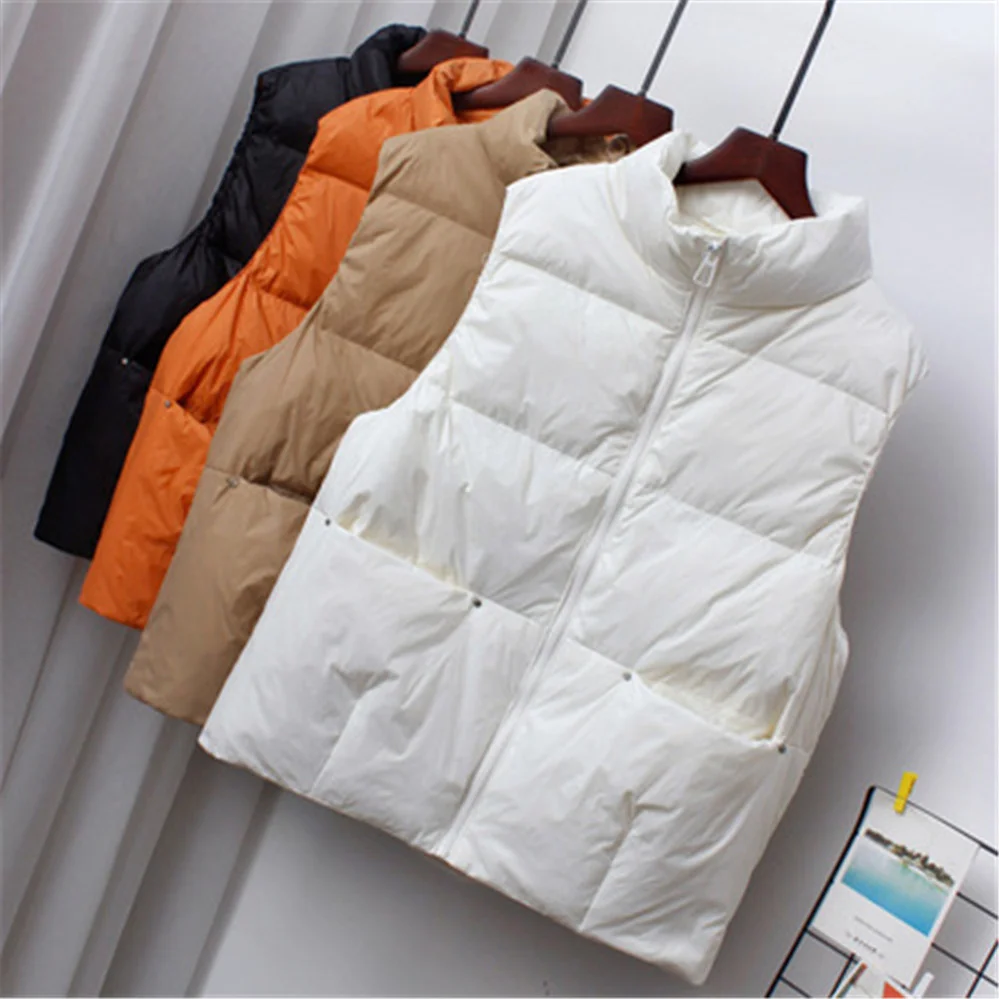 Женский пуховой жилет на молнии, свободный утепленный жилет без рукавов, корейский стиль, 2023