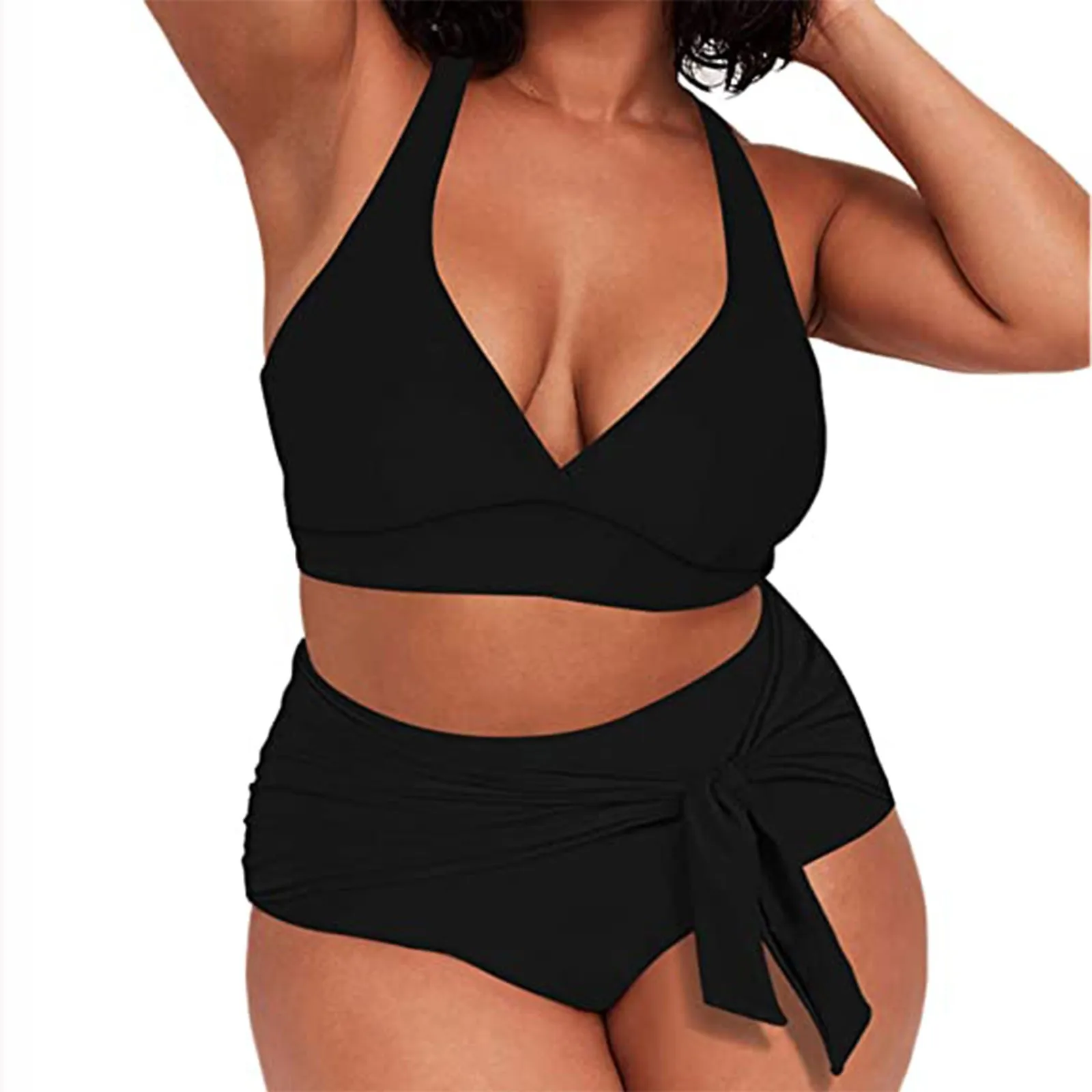 Женский раздельный купальник с леопардовым принтом, однотонный раздельный купальник с высокой талией, модель 2023 года