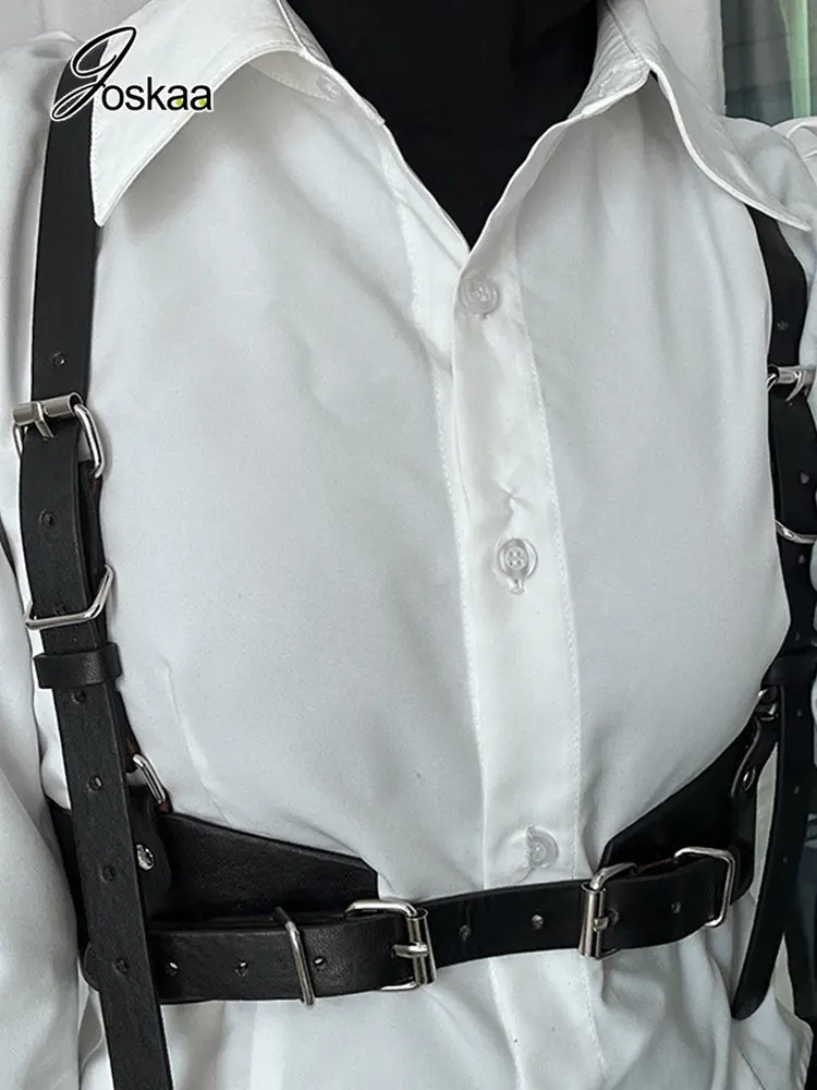 Женский ремень-корсет Joskaa, черный ремень из искусственной кожи, регулируемый пояс в стиле панк