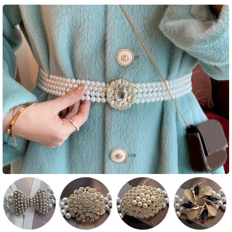 Женский ремень с бусинами, эластичный пояс с имитацией жемчуга, 1 шт.
