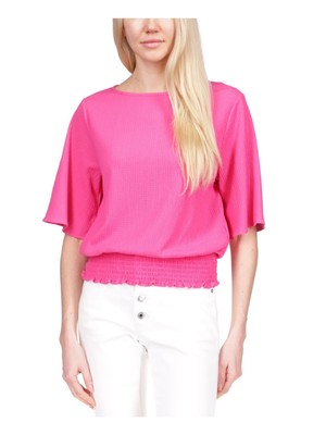 Женский розовый текстурированный топ с круглым вырезом и рукавами до локтя MICHAEL KORS для работы