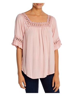 Женский розовый текстурированный топ ALI - ANDI с квадратным вырезом и рукавами до локтя