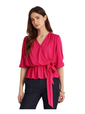 Женский розовый топ с запахом и длинными рукавами LAUREN RALPH LAUREN