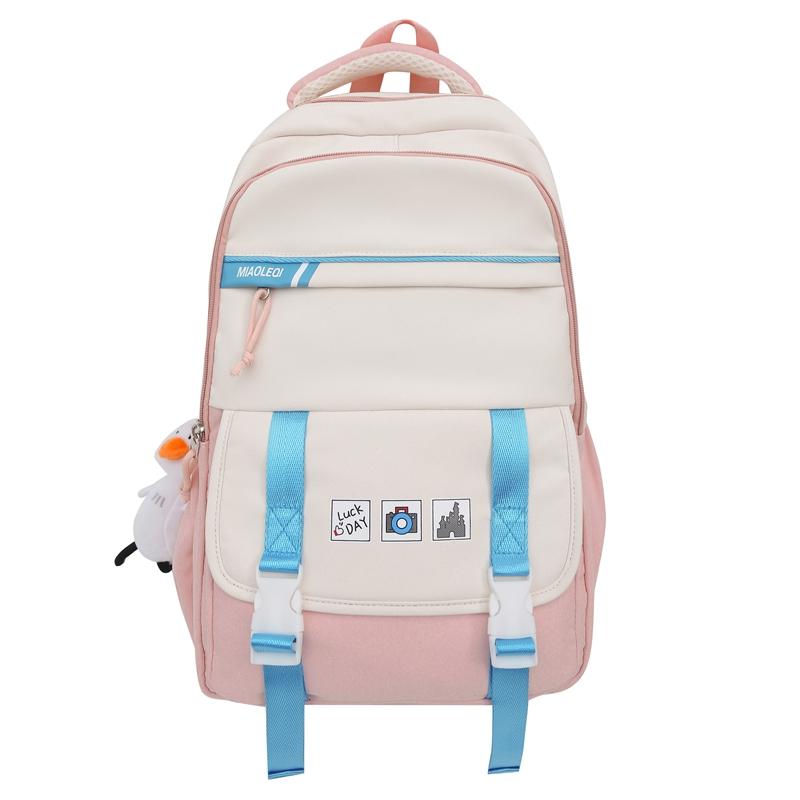 Женский рюкзак большой емкости из нейлона, студенческий рюкзак, школьная сумка в стиле кампуса с цветными блоками розовый