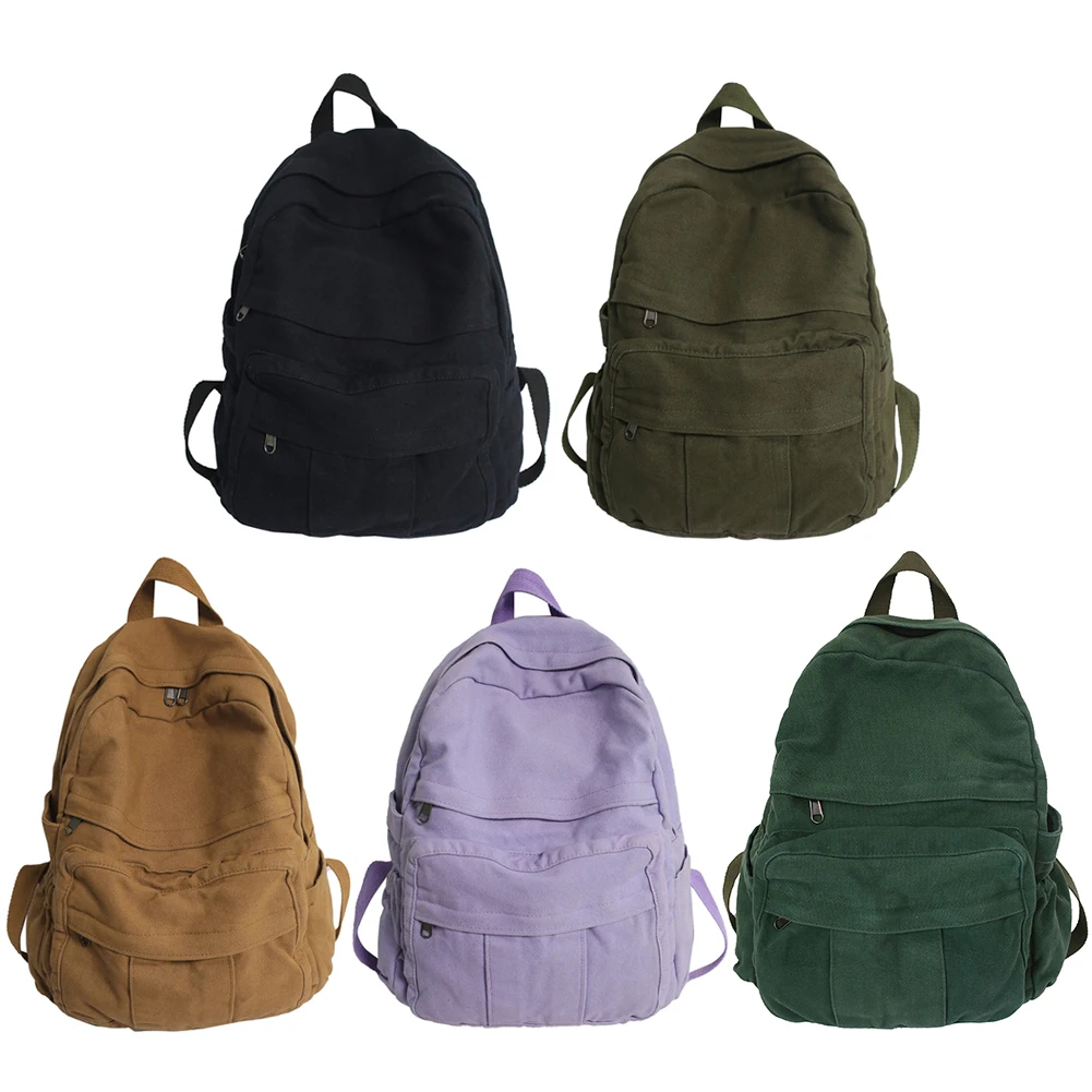 Женский рюкзак для студентов колледжа, однотонный простой рюкзак для девочек-подростков в стиле Харадзюку, винтажная вместительная Повседневная модная школьная сумка