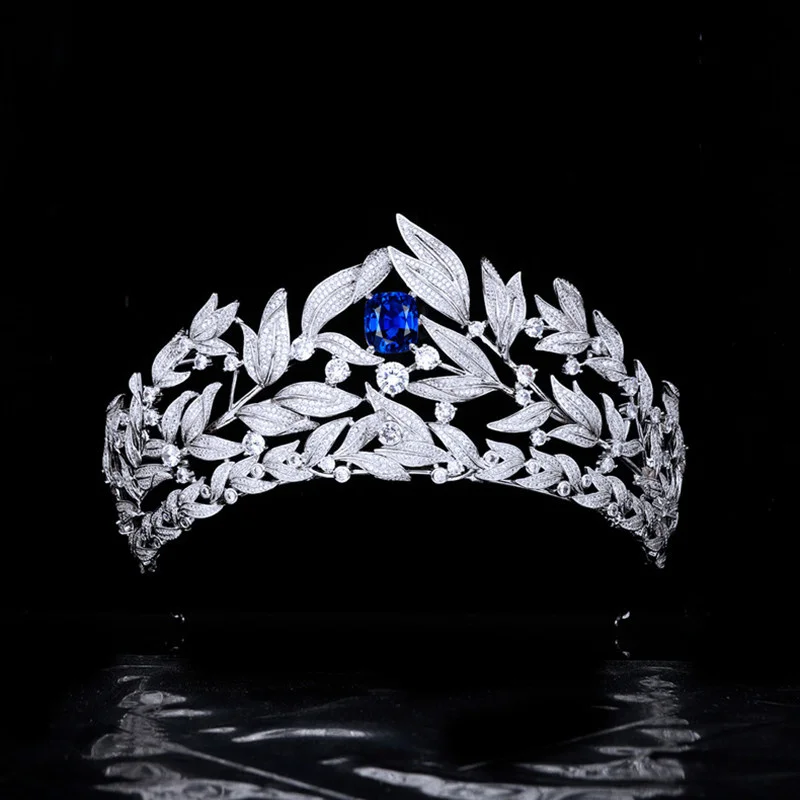 Женский свадебный головной убор, обруч для волос невесты из циркона с инкрустированным микро-инкрустированным синим камнем, аксессуары для волос, HQ0593