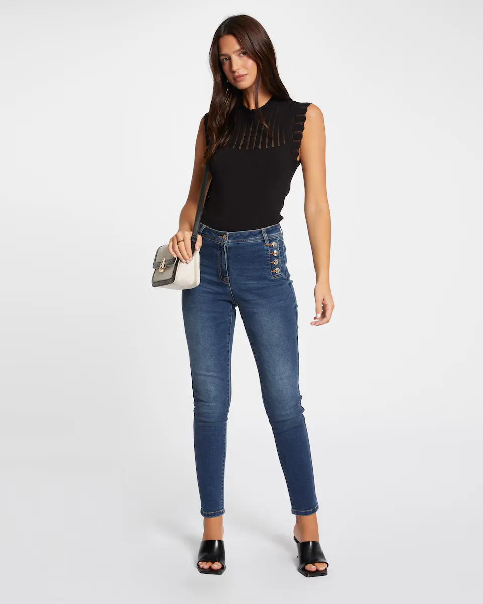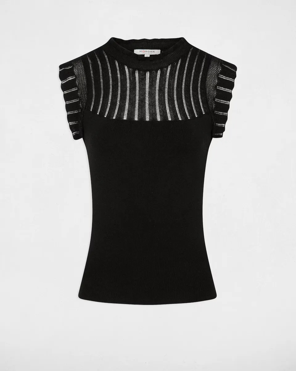 Женский свитер без рукавов с ажурными деталями Morgan, черный