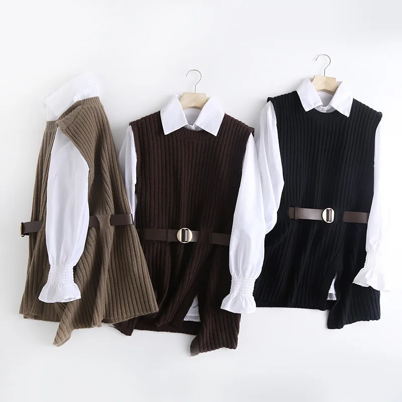 Женский свитер, жилет, блузка, костюм из двух предметов, осенне-зимние топы, женский жилет, трикотажный джемпер, мягкий теплый AE565, 2022