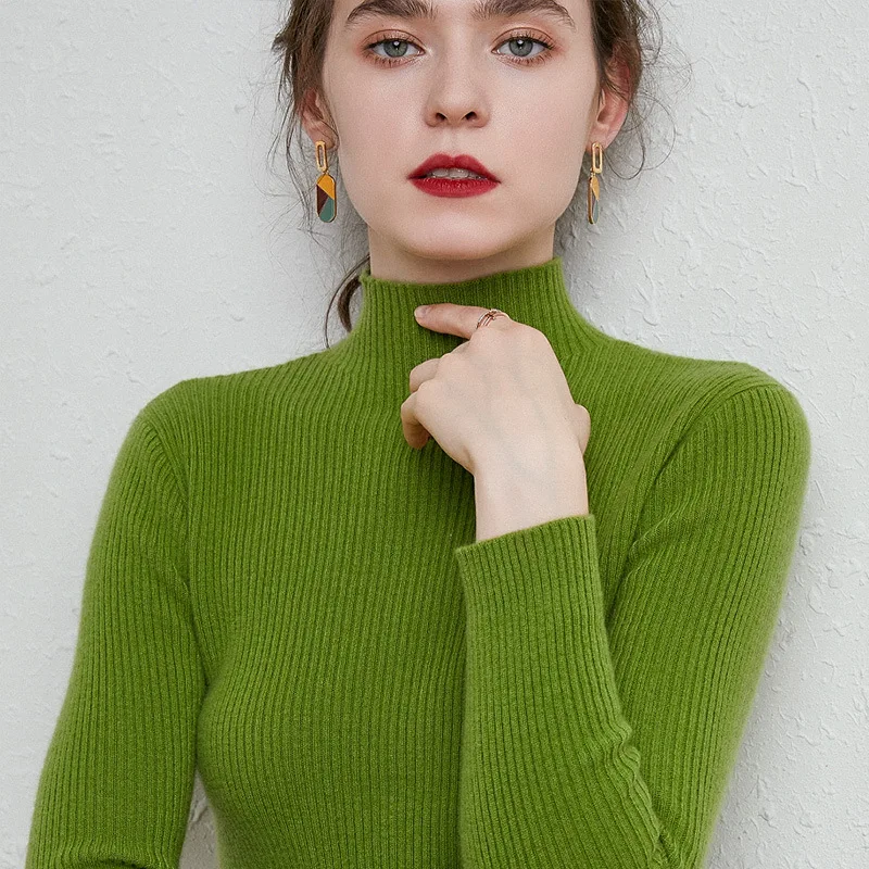 Женский свитер, новая осенне-зимняя блузка с длинными рукавами и узким низом, свитер с высоким воротником