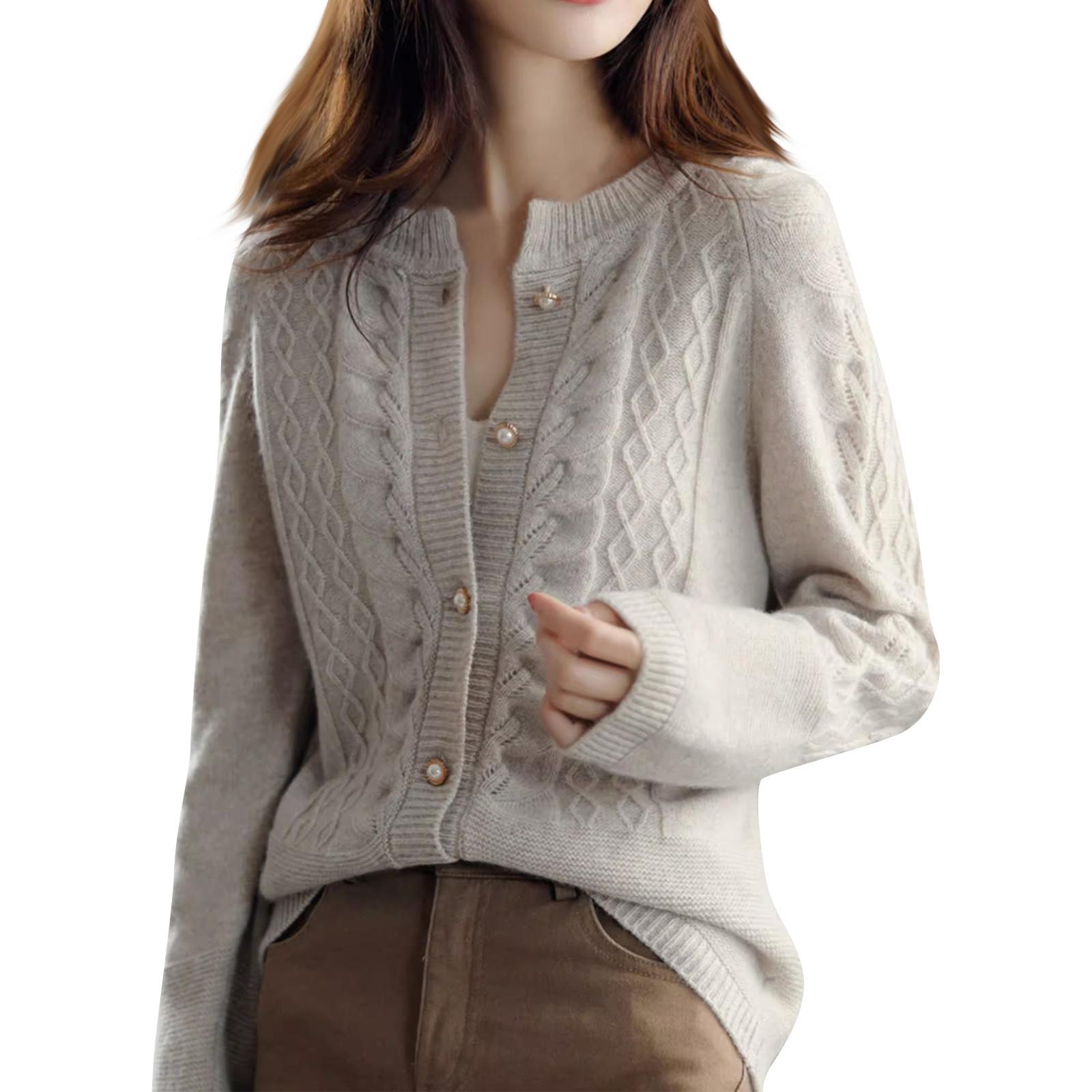 Женский свитер-пуловер с длинными рукавами и круглой горловиной, облегающий по фигуре кофейный