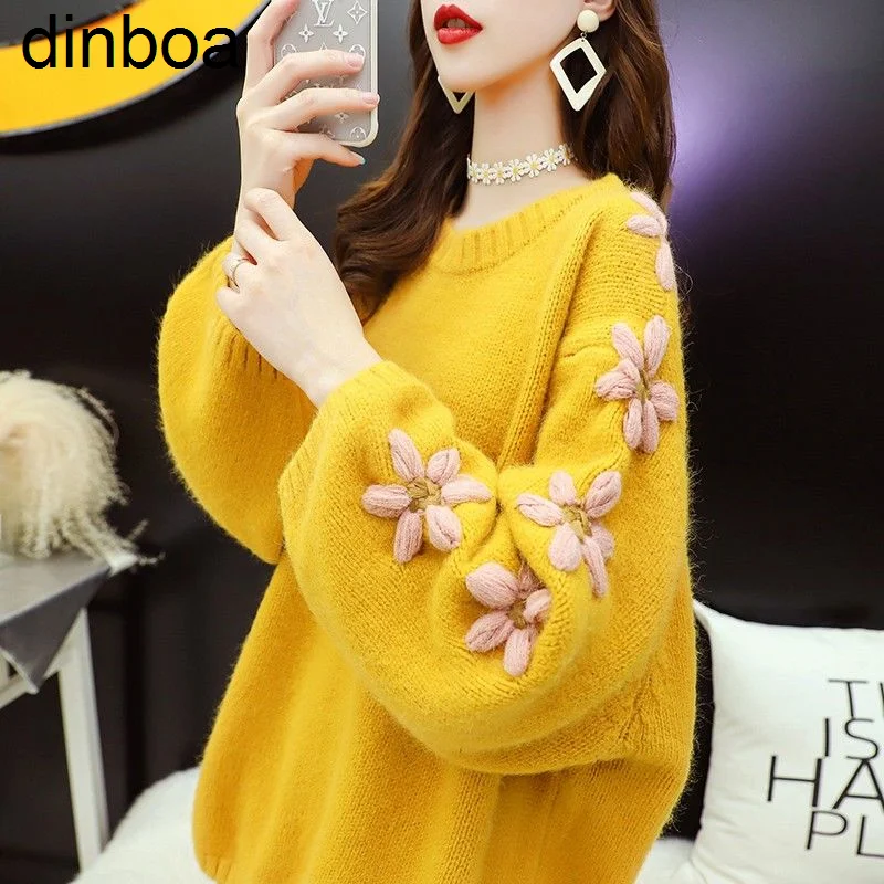 Женский свитер свободного покроя, с длинным рукавом, в стиле ретро