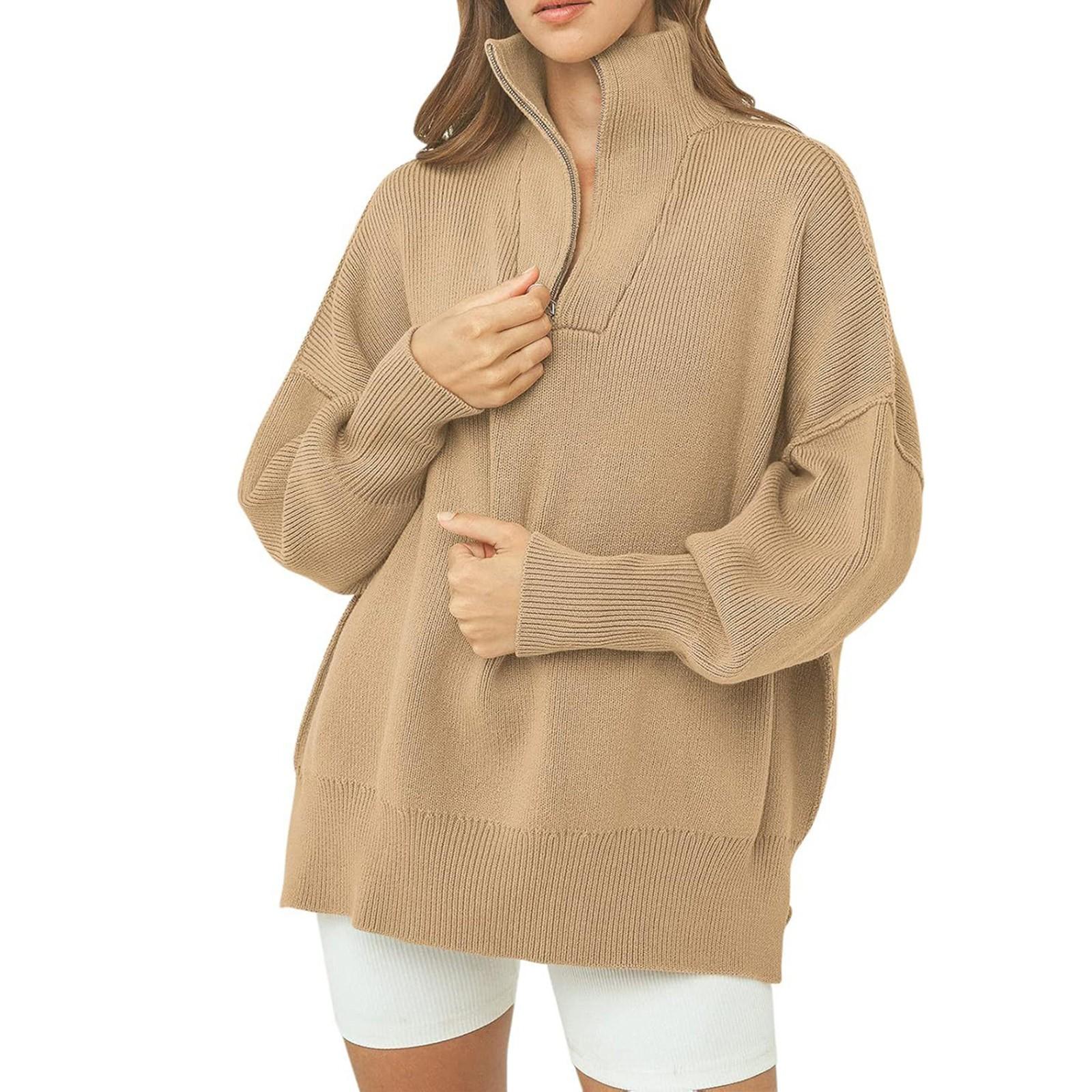 Женский свитер с высоким воротом и длинным рукавом на молнии, свитер с открытыми плечами L хаки